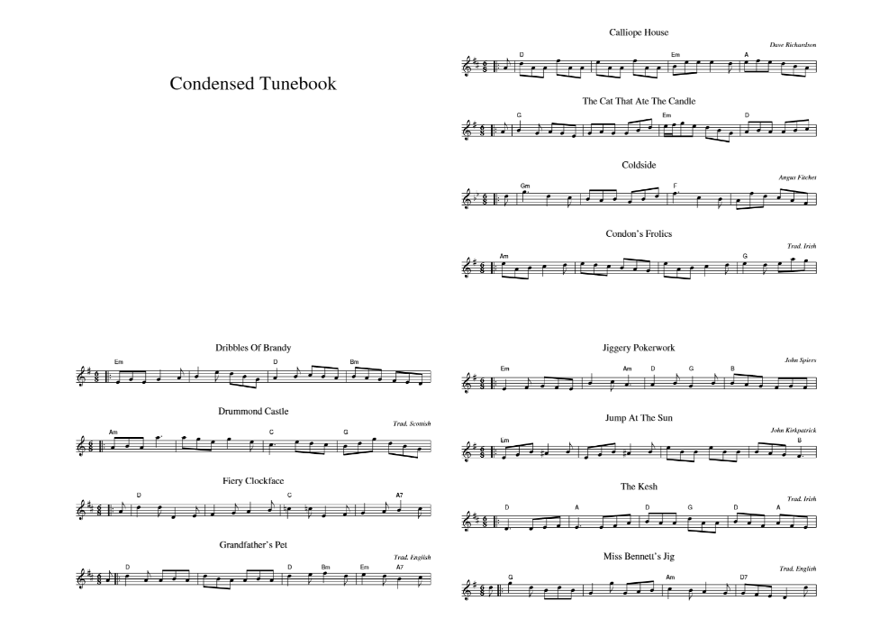 To try and remedy this, a friend asked me to convert a tunebook into a small, pocket-sized version, containing only the first line of each tune. So I wrote a simple script to condense a full book down into this format!